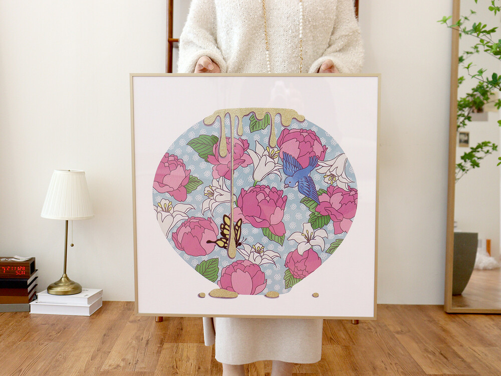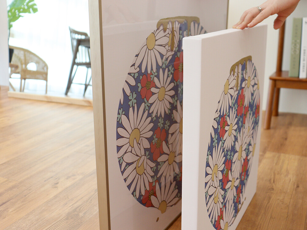 타 저렴한 캔버스보다 훨씬 고급스럽고 깔끔한 마무리를 자랑하는 액자입니다.